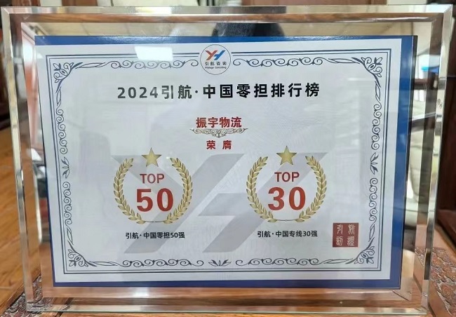 【喜報】振宇物流榮膺《2024引航·中國零擔50強排行榜、引航·中國專線30強排行榜》!