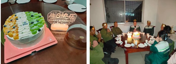 壽星們圍坐,燭光逐一亮起時,有人閉(bì)目凝神,有人望向身側的同事,輕聲許下心願。從許願時的真誠,到吹蠟燭時的歡呼,再到飯桌上的暢聊,這場生日會傳遞的不僅是溫暖,更是振宇物流“以人爲本”的核心價值觀。它讓員工感受到企業不隻是工作的平台,更是並(bìng)肩前行的“家人”,成長不隻是個人的奮鬥,更有團隊的托舉。