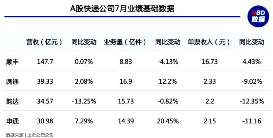 雖然大部分公司在7月實現瞭(le)業績增長(zhǎng),但是快遞行業的單票價格進一步下跌也引發業内擔憂。
