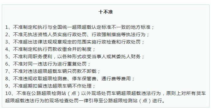 去年,交通部173号文件中還(hái)提出瞭(le)“十不準”紀律: